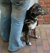 A PTSD assistance dog can learn to bring its partner back home or to the car while they're in a dissociative fugue. If the partner is having a panic attack or a dissociate episode, the assistance dog can lead the way to the exit of a shop, or to a secure seating area. If needed, an assistance dog can learn to interrupt flashbacks and dissociative episodes, turn on the light during nightmares and bring comfort through its closeness during panic attacks or flashbacks. It can learn to follow shop assistants or medical personal on command during dissociative episodes, lead the way through crowds of people, and head towards corners. Trained PTSD assistance dogs wear an assistance dog vest in public, on which is "only" written assistance dog - the type of illness is not advertised. However, you should be aware, if you want a PTSD assistance dog, that it will be apparent in public that you have an illness, even if the exact nature of the illness remains private.